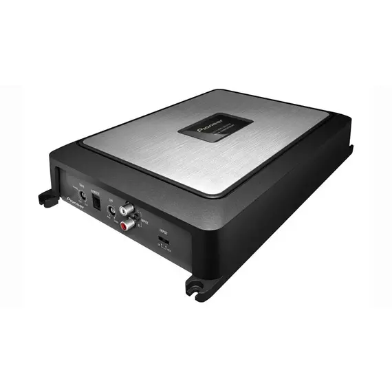 Class-D amplifiers overcome the inefficiencies of traditional Class-A or AB amplifiers. Pioneer’s Class-D amps transform very little power into heat so a higher percentage of the power supply (67%) is transformed into the load. This results in a very compact amp which needs less input power to produce very high output power. The Class-D amplifier’s PWM (Pulse Width Modulator) modulates the original audio input signal with a triangulated signal wave which has a much higher fixed frequency. The result is a digital signal which contains both the input signal and a band of frequency components around the modulation frequency. A LPF (Low Pass Filter) then filters out the high frequency pulses and the resulting amplified output signal is then sent to the subwoofer and/or speakers.