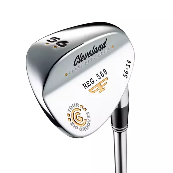 The 588 Forged wedge maintains the popular, tour-proven shape of its predecessor with a series of technological breakthroughs to provide even more performance. Every wedge is Precision Forged from 1025 carbon steel for incredibly soft, solid feel and the highest level of manufacturing consistency for supreme confidence and trust over every shot. Tour Zip Grooves™ and Laser Milled™ technology maximize spin in accordance with USGA regulations. Exclusive to the 588 Forged wedge is the Tour Concept Wedge steel shaft, co-developed and engineered by Cleveland Golf and industry leader True Temper. With a unique stiffness profile that features a less active tip, this shaft promotes a more penetrating ball flight, increased spin and optimal distance control along with superior feel. Choose from two different finishes – Satin and Chrome – as well as low, standard and high bounce options.